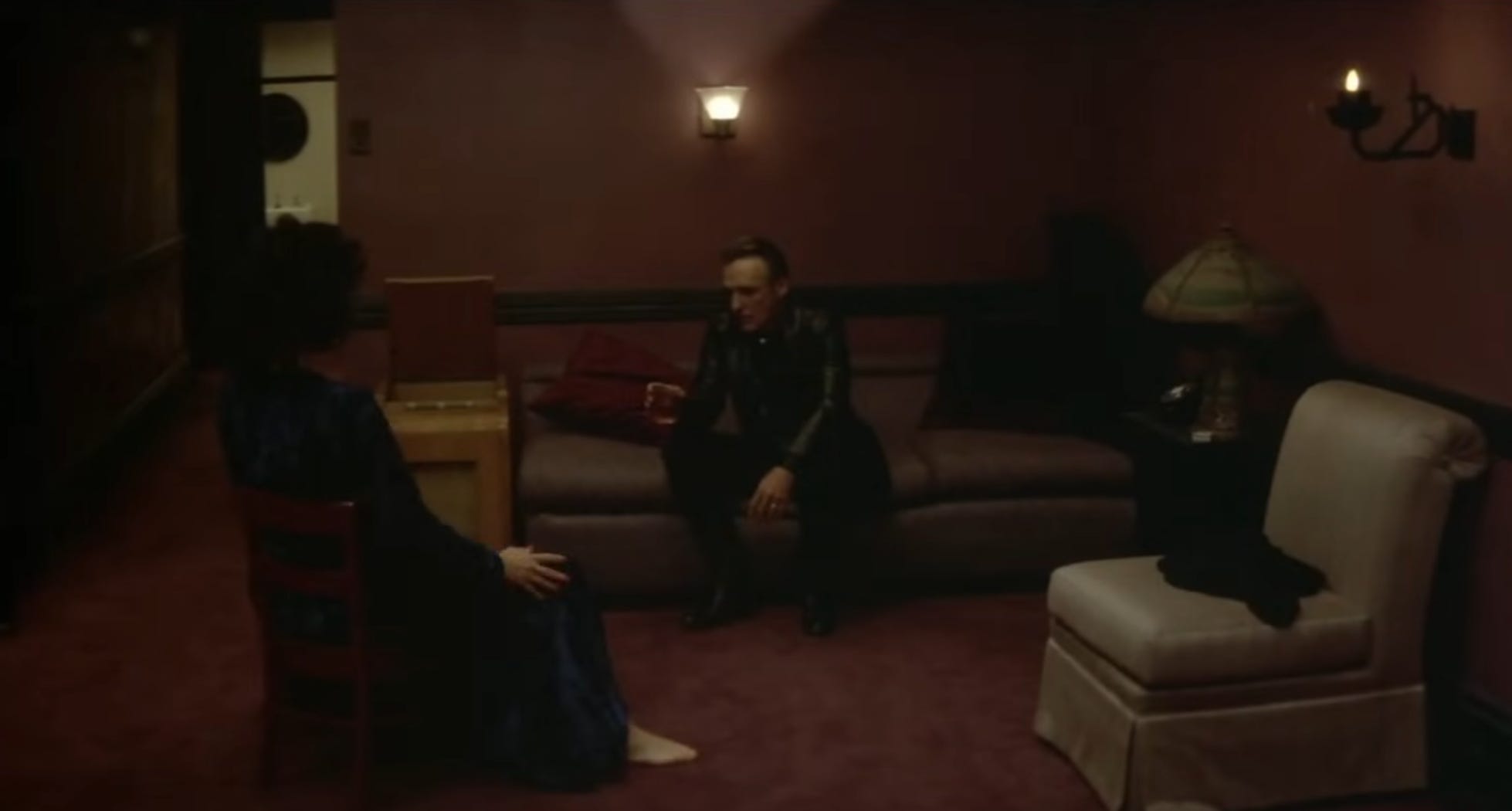 Need more evidence? Coming up. Let’s skip ahead to Ben’s place. Pretty weird, no? Lynch loves these in between places. The various lodges in Twin Peaks, Club Silencio in Mulholland Drive, the Axxon N. office and the literal movie theatre in Inland Empire. They represent the space between the real world and the movie world—something like a backstage area, the wings. In Blue Velvet, Ben’s place is the realm of the studio exec. This is where the real decisions get made. It’s a place inhabited by creeps and prostitutes (tell us what you really think, Dave).