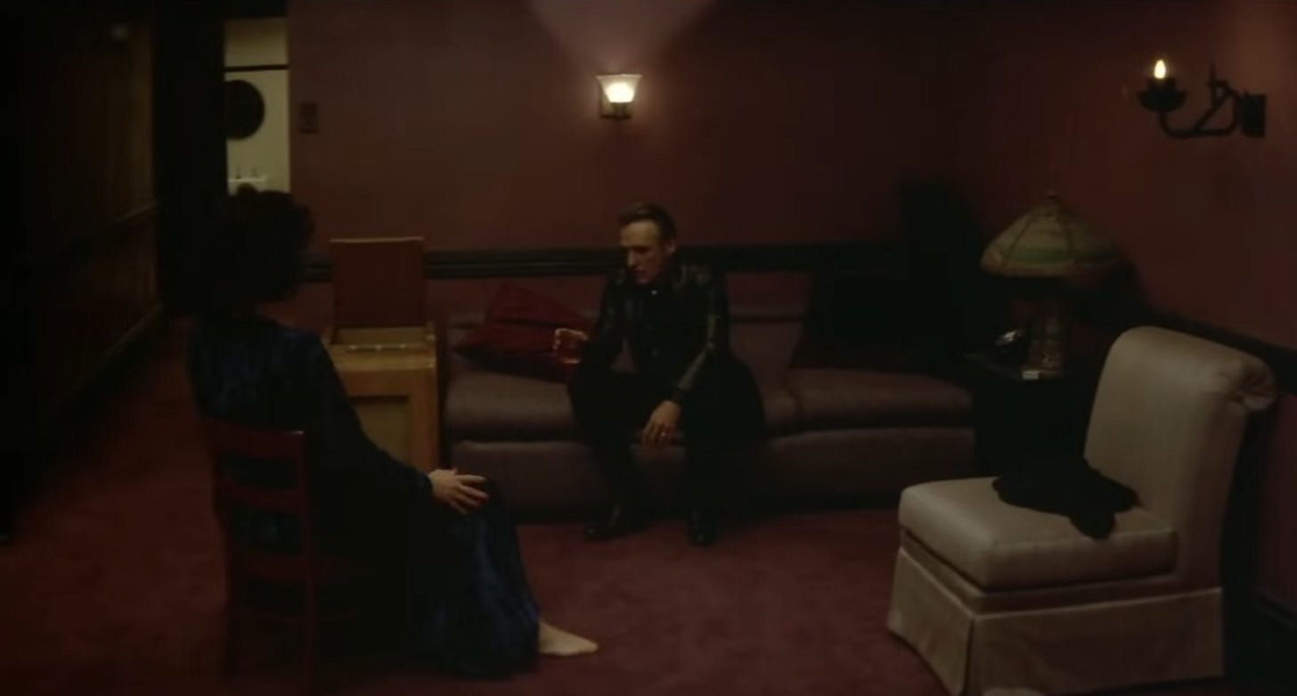 We can skip the obligatory plot summary on account of who the intended audience is for this essay: (1) Lynch fans, (2) fans of film analysis, (3) people with too much time on their hands and too little of interest happening in their real lives and who, therefore, find themselves thinking—and, indeed, overthinking—about the subtext and symbolism and metaphysics of movies and TV shows (AKA me and probably 3 other lunatics in the entire world).